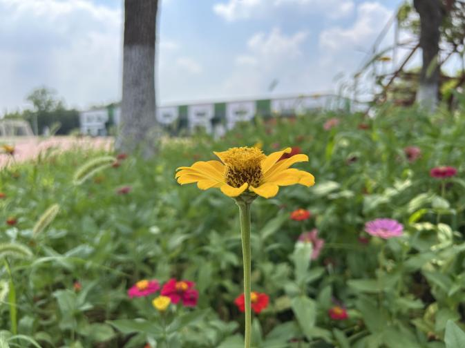 开营现场,巨大的横幅高高悬挂,“28圈 28圈科技暑期集训营” 几个大字格外醒目,校园里盛开的花儿将整个校园装点得充满活力。